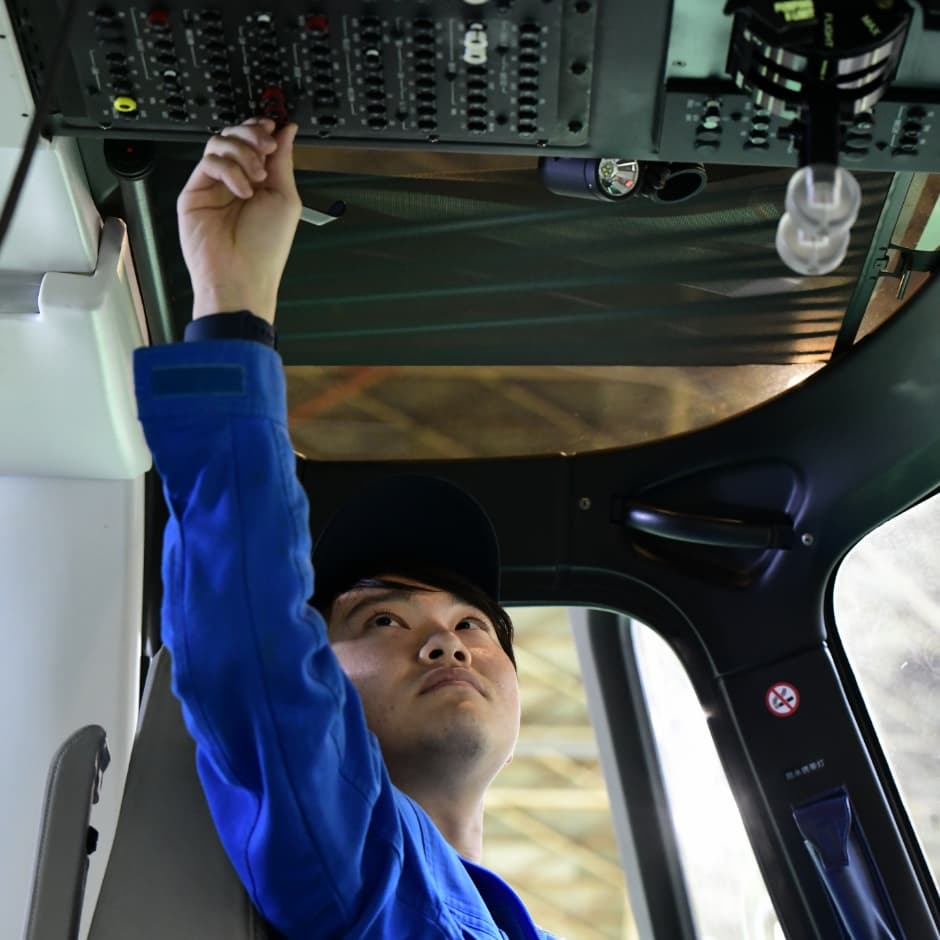 主に点検機をメインに、点検作業の責任者として業務に携わっています。点検内容に応じた必要部品や交換部品の確認、決められた期間内での作業スケジュールの立案、確実な作業の実施等の点検に関連する全般事項を把握して日々の安全運航に寄与しています。時には運航機に同乗して報道取材にも携わり、ヘリコプターが飛行する際に必須となる点検作業も行っています。