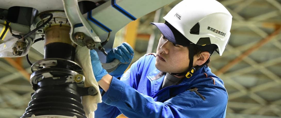 子供の時からヘリコプターは身近な存在でした。地元の上空を飛行するヘリコプターを目にする機会が多く、整備士を目指すようになりました。そんな中、良く見かけていたヘリコプターが東邦航空で運航する機体であることを知り、整備士として地元で活躍するヘリコプターの運航に係わりたいと思い、入社を決めました。